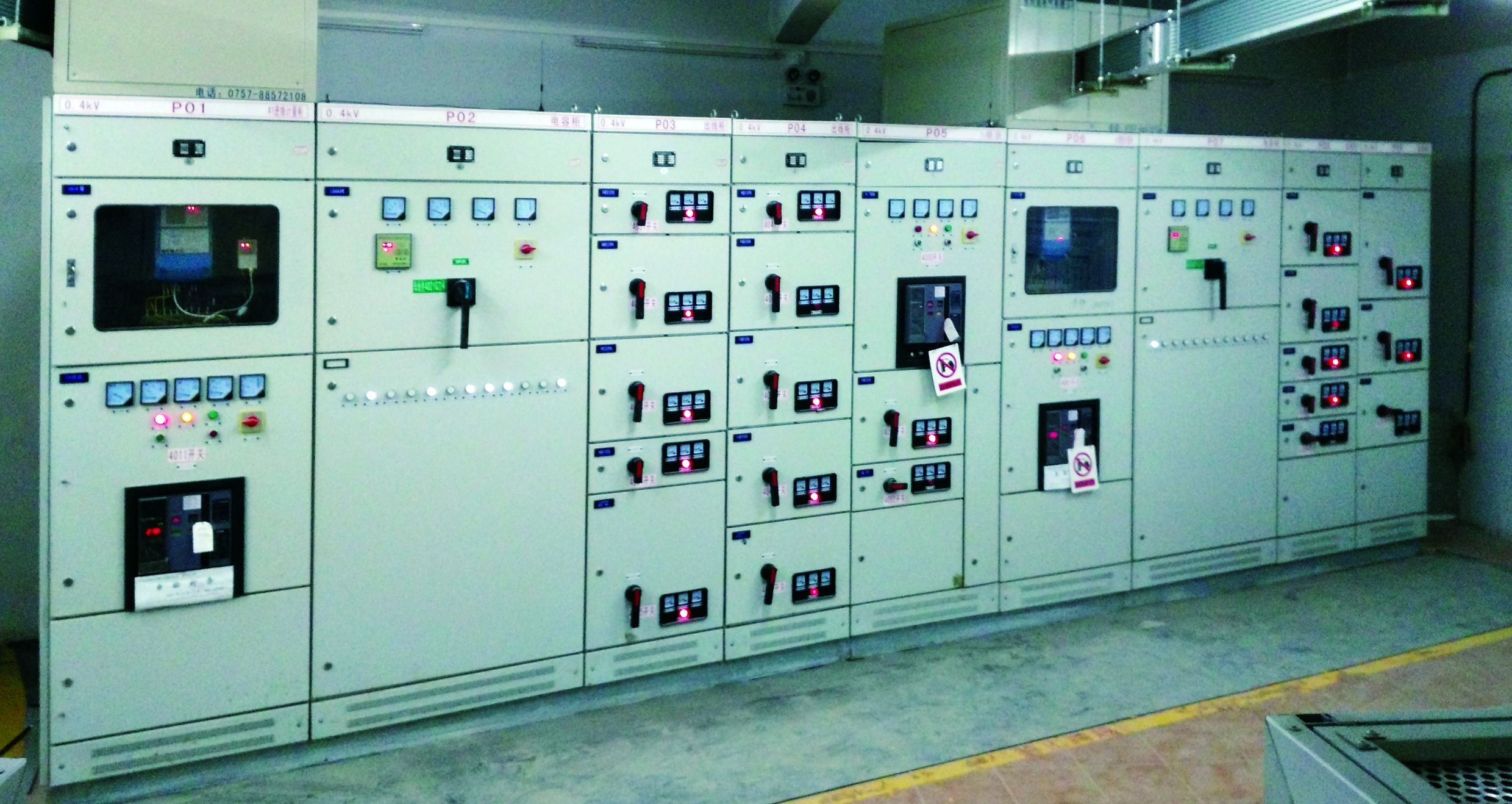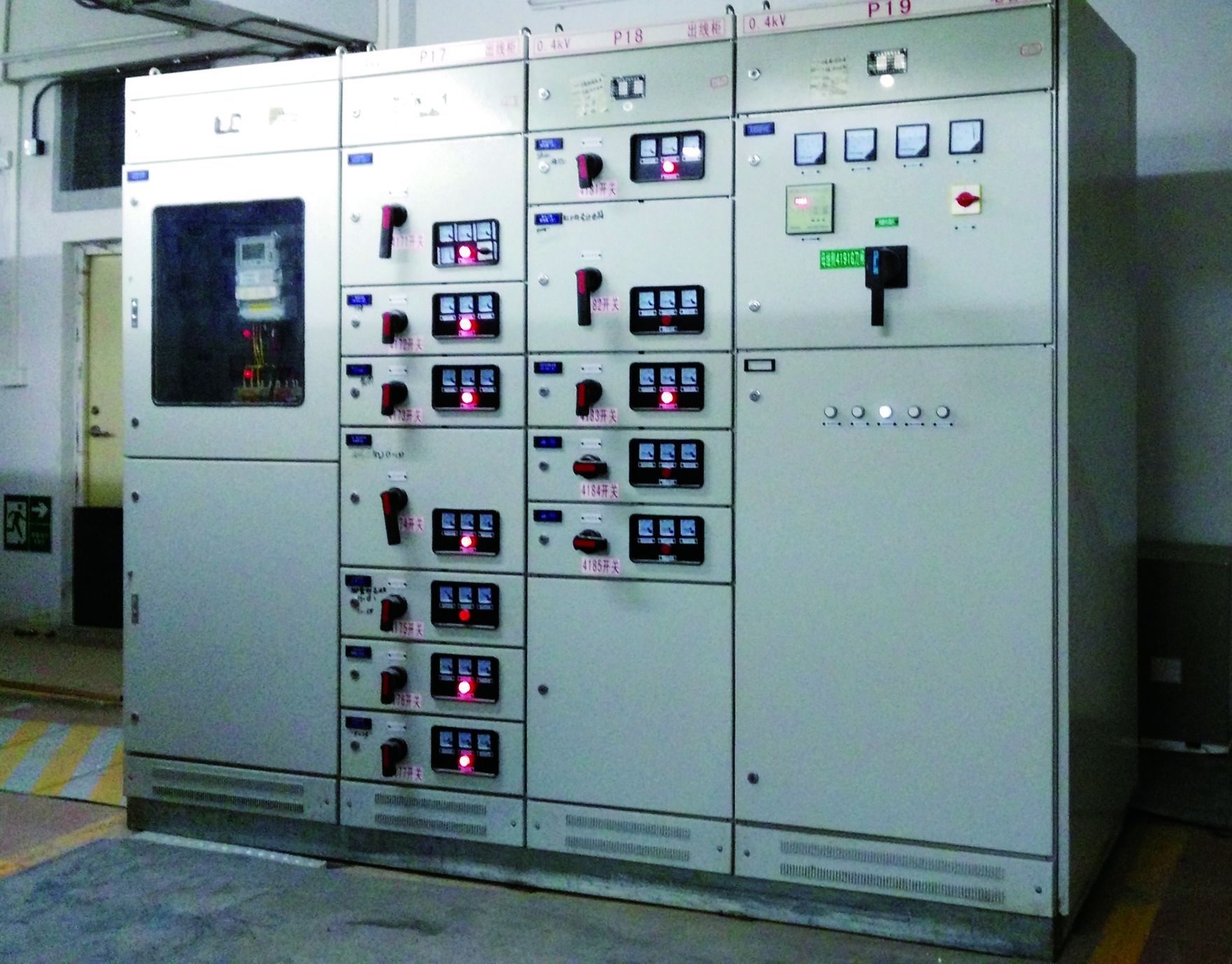 總功率為3800kVA,配備4臺(tái)800kVA和1臺(tái)630kVA變壓器,高壓配電柜采用XGN高壓負(fù)荷開關(guān)柜,額定電流630A,抵壓配電柜采用GCK斷路器柜,單個(gè)配電房總功率為1600kVA,備用電源為2臺(tái)400kW備用發(fā)電機(jī)。